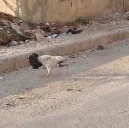 وهاي ديك مسكين كان عم يستكشف شو في بالكيس , بس ما عرف يطلع راسو( رأسه ) بعدين , حاول وحاول , بعدين وقف وبطل يتحرك , من شي ثلاثة أسابيع ...