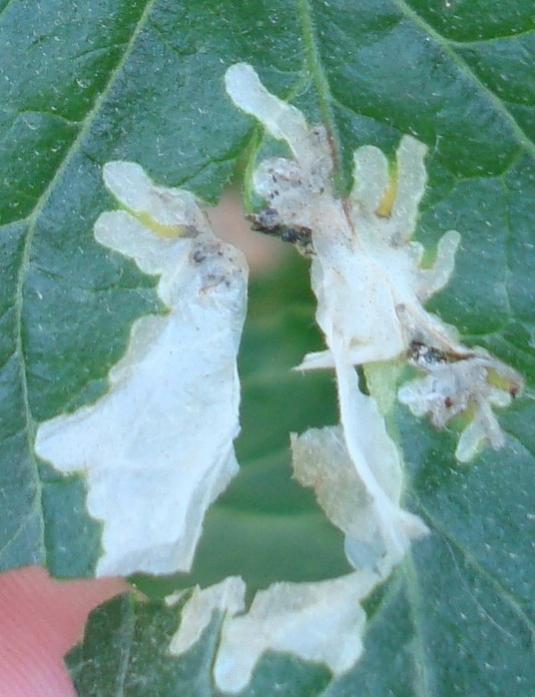 الصورة التالية توضح أعراض إصابة أوراق نبات البندورة بإحدى الآفات والسؤال ماهو الإسم العلمي لهذه الآفة ؟؟؟؟