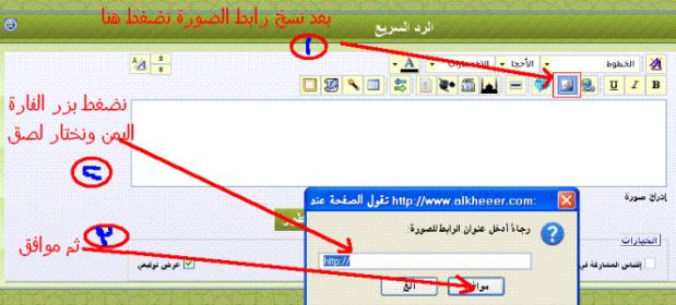 3-نضط على ايقونة وضع رابط الصورة اجمل الردود للمواضيع (كما موضح بالشكل اي رقم واحد)
