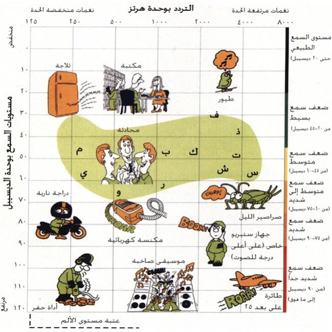صور تمثل مخطط ومقارنة بما يسمعه الانسان الطبيعي وبين ذوي الاعاقة السمعية اضغط على الصورة للتكبير اذا لم تستطع رؤية الصورة فانك تحتاج التسجيل في المنتدى من هنا